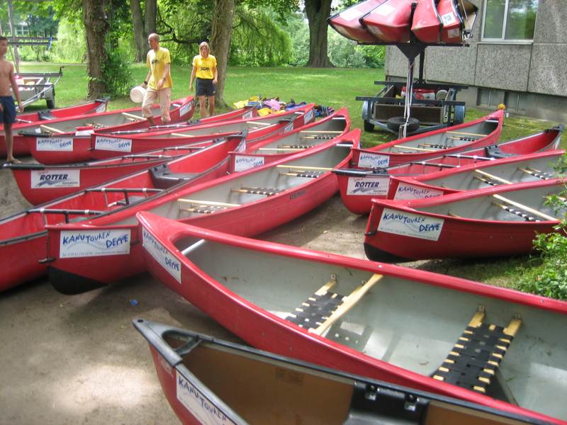 Ideal geeignet zum Kanufahren auf der Lippe sind die von uns eingesetzten 4er und 5er Canadier (Trapper 518 von Lettmann und RAM-X-17 von Coleman). Die Boote lassen sich nach entsprechender Einweisung leicht auch von völlig Unerfahrenen beherrschen. Die Formen bieten einen guten Kompromiss zwischen Kippstabilität, Lauf- und Drehfreudigkeit.